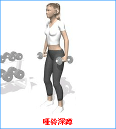 哑铃深蹲动作要领:双手握哑铃放在肩上或垂在体侧,抬头挺胸;身体平稳下蹲,直到大腿与小腿交角小于90度,然后大腿用力站起来;