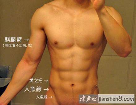 人鱼线亦称:人鱼纹 指的是胯部与下腹肌之间形成的一条线,因其形似于人鱼下部略收缩的形态 故称之为人鱼线。 ![]() 人鱼线的正式学名为“腹内外斜肌”,在达·芬奇的《绘画论》里首次被提出来作为“美”与“性感”的指标,其中最为人所知道的就是“维特鲁威人人体比例图”(The Vitruvian Man),也就是我们常听到的“黄金比例图”,达·芬奇特别把男性腹部两侧接近骨盆上方的两条V形线条称为人鱼线。想想在海边穿上性感泳裤,露出性感的人鱼线,肌肉健美,脖子上挂着一条毛巾,头发全都拢起来,脸上身上还带着水珠...