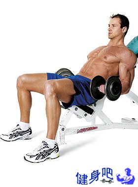 (2)上斜仰卧哑铃弯举(Incline Dumbbell Curl):